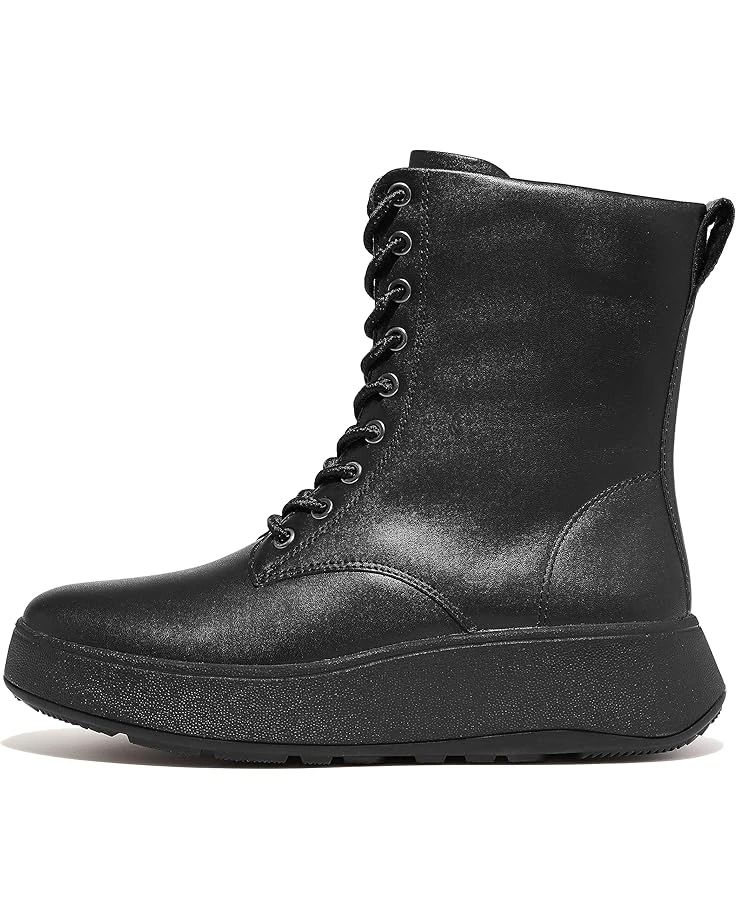 - Let your classic and sophisticated sense of style be praised wearing the FitFlop™ F-Mode Leather Lace-Up Flatform Ankle Boots. This lace-up footwear features an alternative zippered side closure and pull tabs for easy wear. The shock-absorbing triple-density Microwobbleboard™ midsole helps diffuse underfoot pressure by swiftly increasing the contact area with the foot.