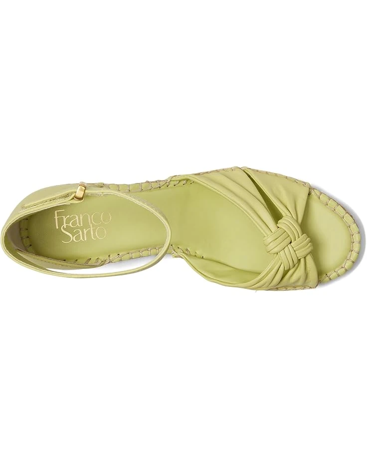 - Elevate your look with the timeless silhouette and trendy aesthetic of the Franco Sarto® Clementine Heels. The open toe heels are crafted with a leather upper with a delightful knotted strap detail at the front and an ankle strap with adjustable hook-and-loop closure. These come with a polyurethane lining, leather insole, synthetic rubber outsole, and a jute-wrapped wedge heel.