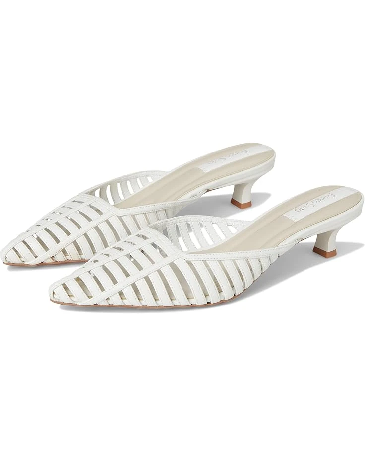 - The intricate leatherwork highlights a stunning design of Franco Sarto® Marlina, complemented by the perfect kitten heel for a touch of sophistication. Made with high-quality faux leather upper, these slip-on sandals offer a stylish option for your wardrobe.